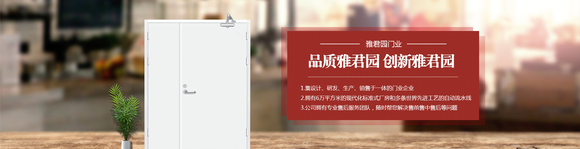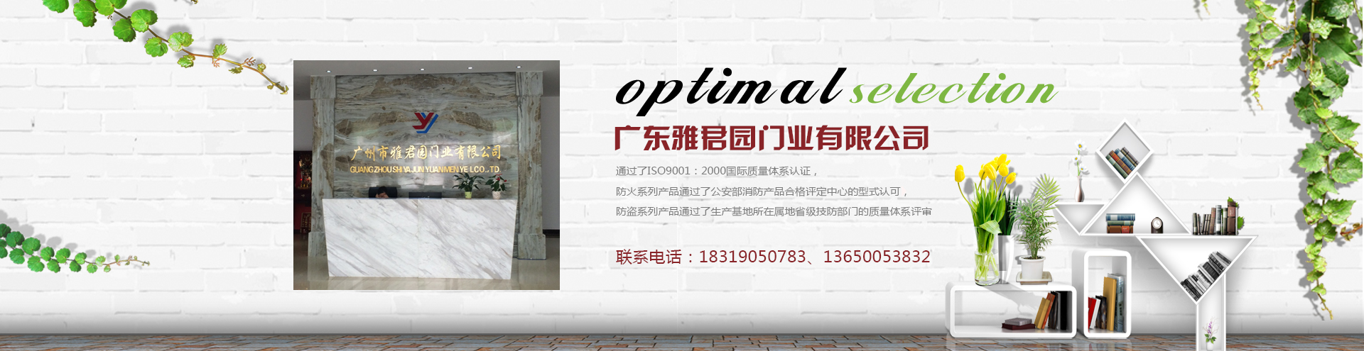 廣東雅君園門(mén)業(yè)有限公司是專(zhuān)業(yè)設(shè)計(jì)、生產(chǎn)、安裝防火、防盜系列產(chǎn)品的大型股份制企業(yè)。雅君園現(xiàn)有廣州、新疆、湖北三大生產(chǎn)基地,公司現(xiàn)有員工800多人,現(xiàn)代化廠(chǎng)房6萬(wàn)平方米,大批進(jìn)口設(shè)備和生產(chǎn)流水線(xiàn),計(jì)算機(jī)網(wǎng)絡(luò)管理系統(tǒng)和高素質(zhì)的管理隊(duì)伍,形成了年產(chǎn)20萬(wàn)樘各類(lèi)門(mén)的生產(chǎn)能力。在廣東省、海南、湖南、廣西、新疆等地具有很高的行業(yè)知名度和美譽(yù)度,業(yè)已成為中國(guó)防火門(mén)行業(yè)的領(lǐng)軍企業(yè)。主導(dǎo)產(chǎn)品為防火門(mén)、防火卷簾、防火玻璃構(gòu)件、防火防盜門(mén)、裝甲防撬門(mén)、復(fù)合防盜門(mén)、格柵門(mén)、室內(nèi)門(mén)、車(chē)庫(kù)門(mén)、自動(dòng)伸縮門(mén)、自動(dòng)感應(yīng)門(mén)、防火卷簾電控箱、常開(kāi)防火門(mén)自動(dòng)關(guān)閉控制器、不銹鋼制品和鋁合金制品等十大系列上百個(gè)品種。